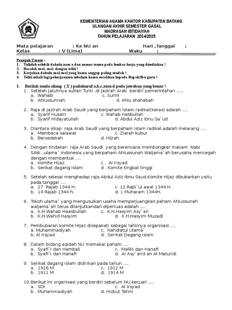 Download Soal Aswaja Mts : Usulan Agar Buku Aswaja Dan Ke Nu An Pwnu Jateng Tidak Gagal Misi / download soal uts ganjil aswaja mts kelas 7 8 9.