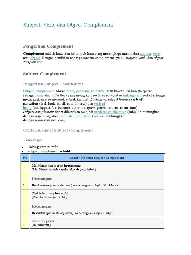 The naughty boys called rezky madman to make him angry. (mantelmu tampak hangat.) 2i'm a civil engineer. Di bawah ini adalah beberapa contoh kalimatnya. trthsimple sentence (subject + verb + object)/th tharti kalimat/th/tr. Rumusnya subject + linking verb + noun/adjective/adverb/preposition/pronoun · pola 2. Verba yang digunakan dalam pola kalimat ini adalah intransitive verb. Kamu dapat mengambil contoh kalimat ungkapan "i miss you" yang tersusun dengan susunan subject + verb + object (svo) yang akhirnya memiliki . Contoh subject verb object object. Untuk membuat kalimat standar perlu ditambah: Perhatikan contoh kalimat sederhana di bawah ini, subjek diberi satu garis. Dibawah ini merupakan penjelasan tentang struktur kalimat dalam bahasa inggris lengkap . Subject + verb + adverb → using intransitive verb. Rumusnya subject + transitive verb + object + .